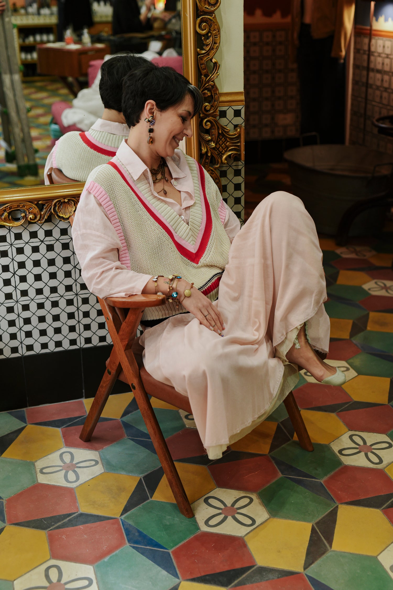 Mentre costruivo questa collezione, mi sono accorta che non mi mancavano “le cose nuove”. Mi mancava il tempo. Mi mancava la cura. Mi mancavano quei tessuti che parlano appena li tocchi. Mi mancavano i tagli che rispettano il corpo invece di costringerlo. Ma mi mancava anche il bello fine a se stesso. Quello scenico, teatrale, che non chiede permesso. Quel capo che ti fa dire “wow” senza dover spiegare perché. E allora ho capito: stavo vivendo, a modo mio, lo stesso punto di rottura. Anche oggi tutto deve essere veloce, giustificabile, performante. Anche oggi la bellezza da sola sembra non bastare più. E anche oggi, io sento il bisogno di dire: no, io non ci sto. Questa collezione ha due anime. Da una parte il fatto bene: artigianato, qualità, sostanza, mani che lavorano. Dall’altra il bello e basta: pezzi scenici, audaci, liberi, che esistono solo perché possono essere belli.
