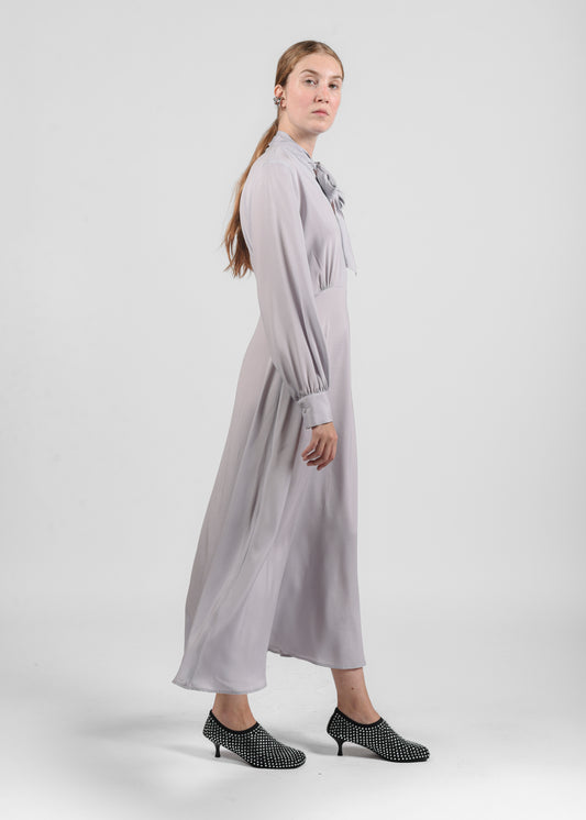 Long Silk Dress with Bow - Grigio