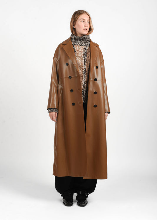 EsauritoLong Faux Leather Coat - Sigaro