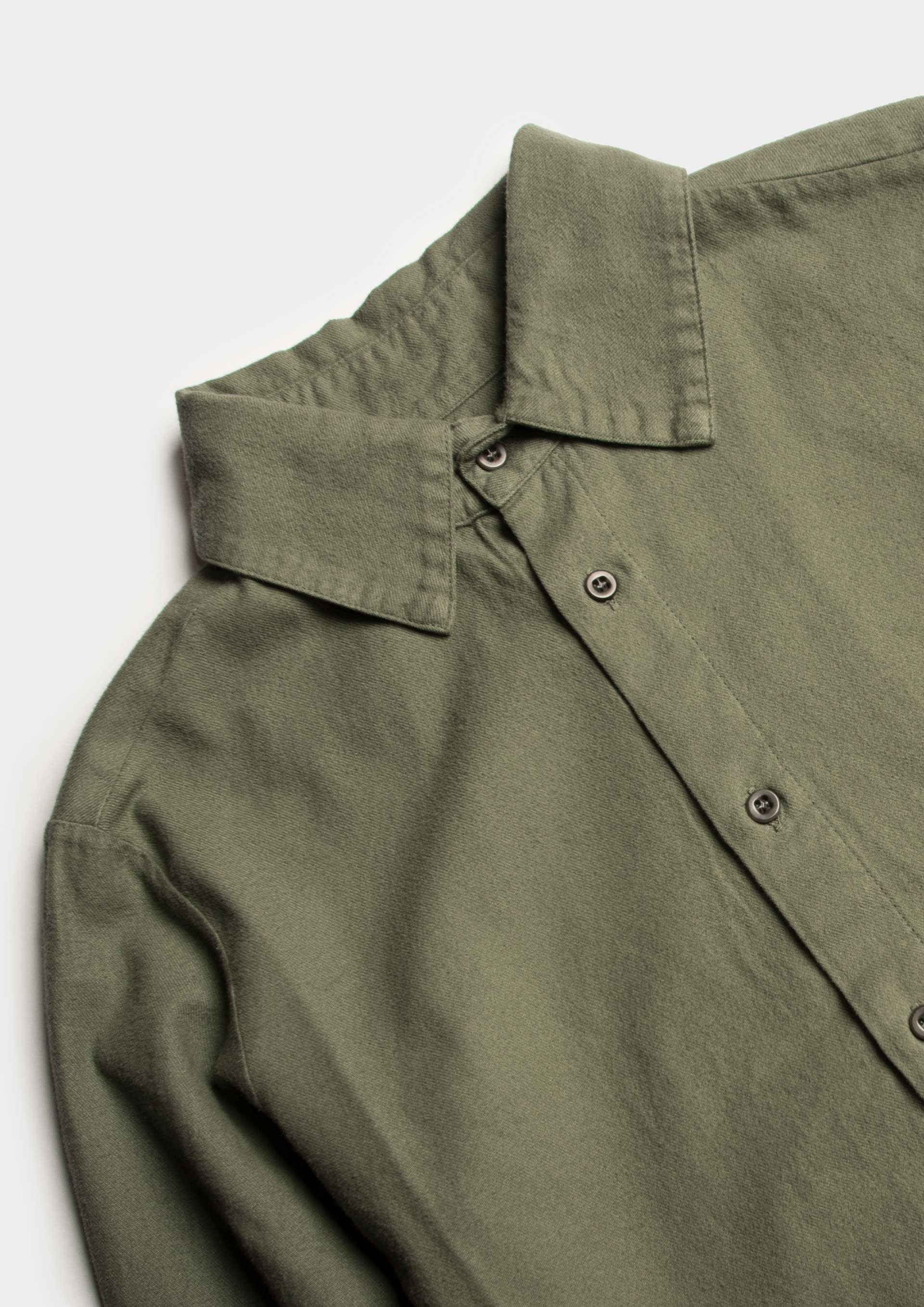 Camicia in flanella leggera con polsini alti e colletto ampio.