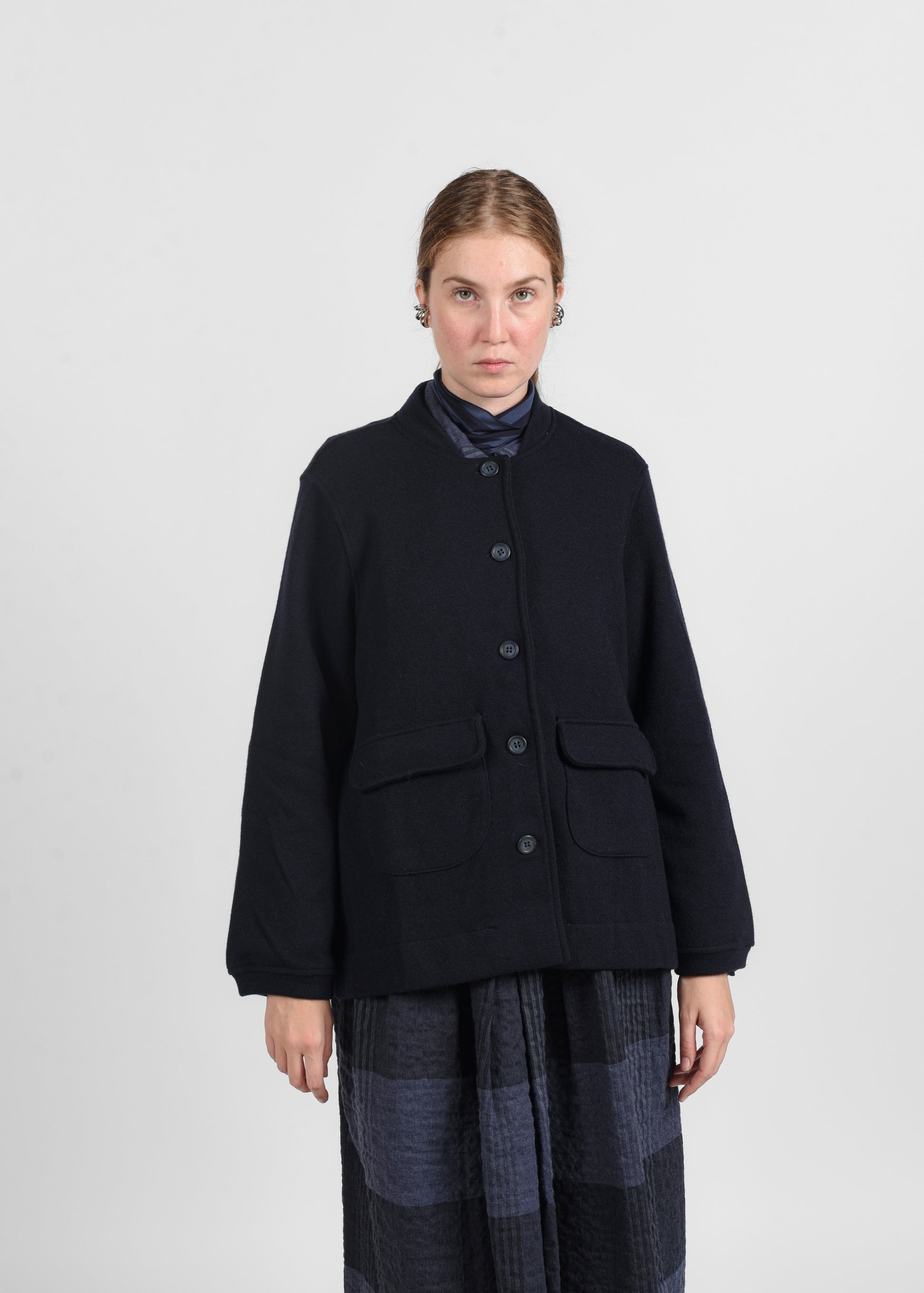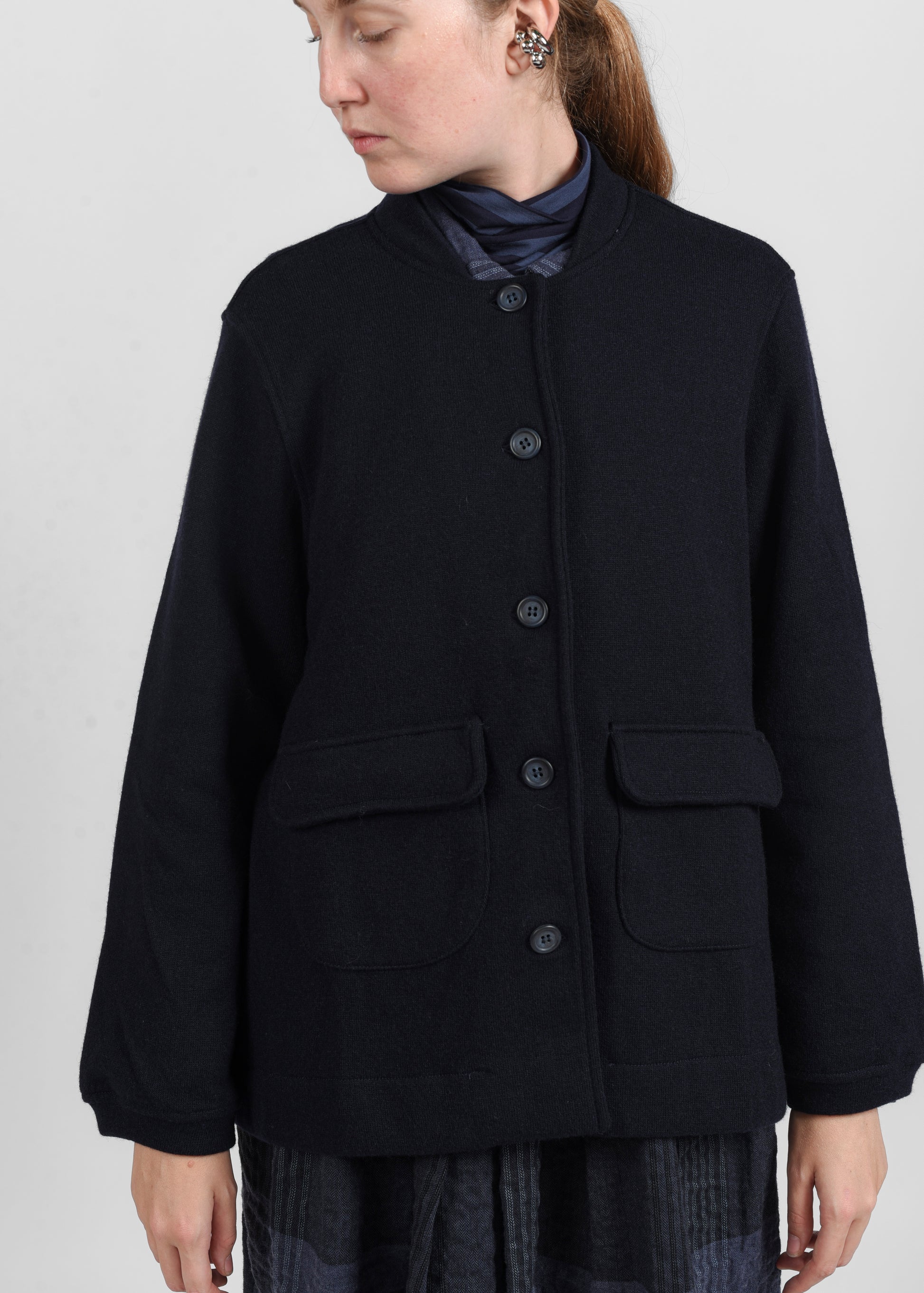 Giacca bomber con girocollo e chiusura frontale a cinque bottoni, caratterizzata da due tasconi con patta sul davanti. Realizzata in un mix di fibre di alta qualità (39% lana, 24% cotone, 24% acrilico, 13% poliammide) per garantire calore, comfort e uno stile versatile, perfetta per look casual o sofisticati.