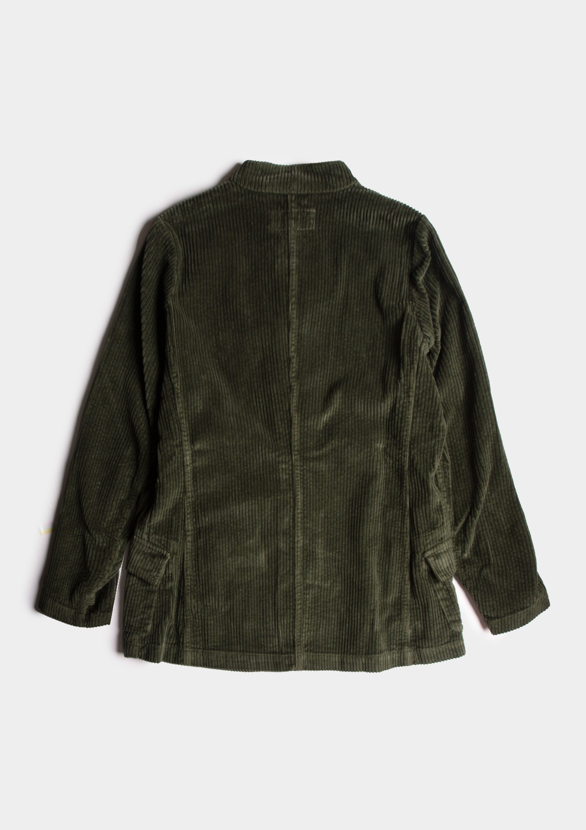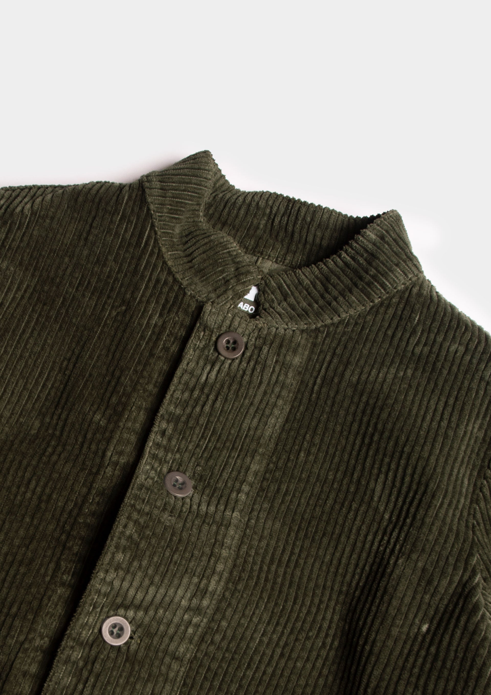 Giacca in velluto a coste con tasche e bottoni, collo alla coreana.