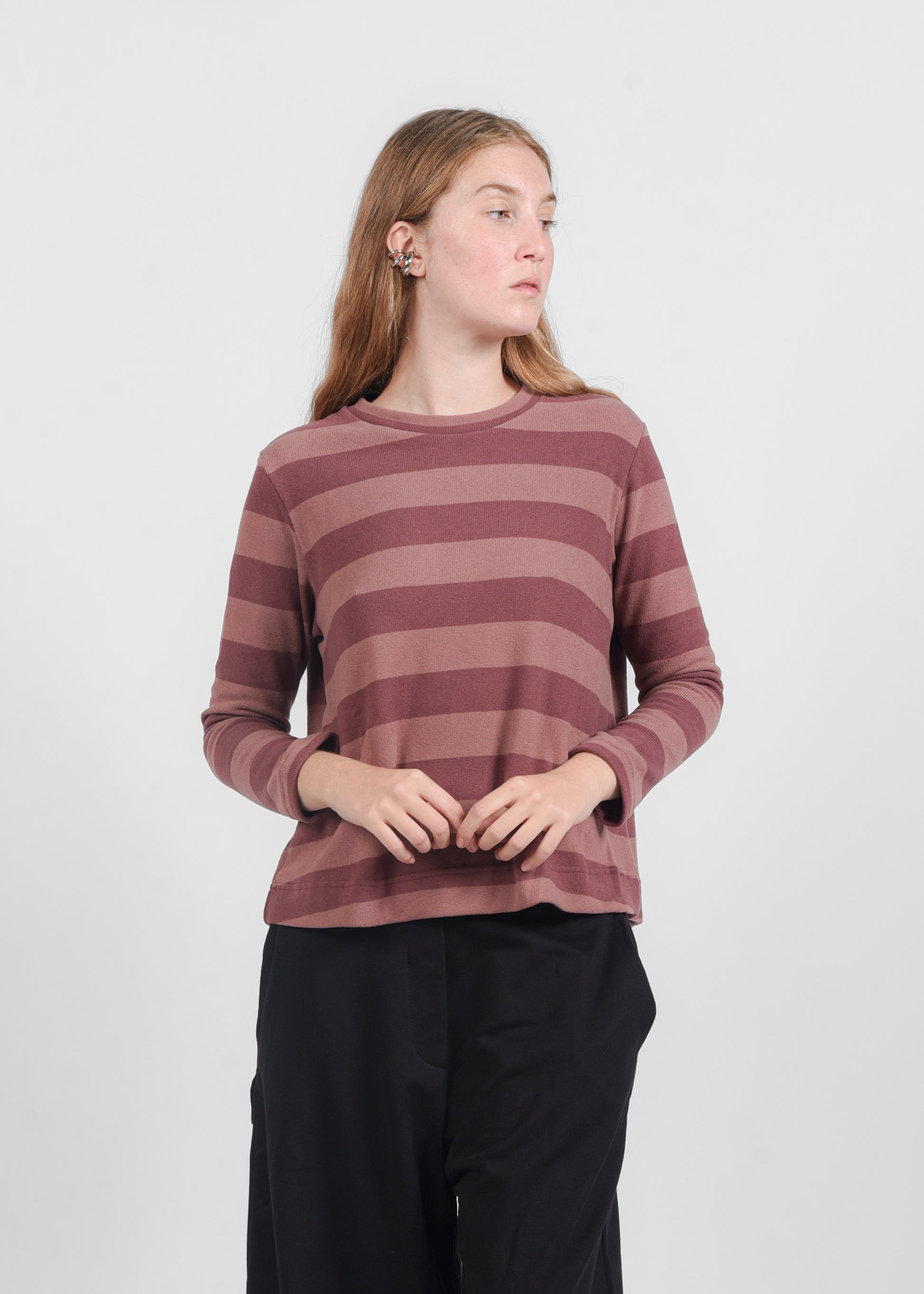 Maglia girocollo modello scarola con fantasia a righe, dal taglio morbido e confortevole. Realizzata in una miscela di 48% cotone, 48% poliestere e 4% elastan, garantisce vestibilità, comfort e leggerezza, ideale per look casual o quotidiani.
