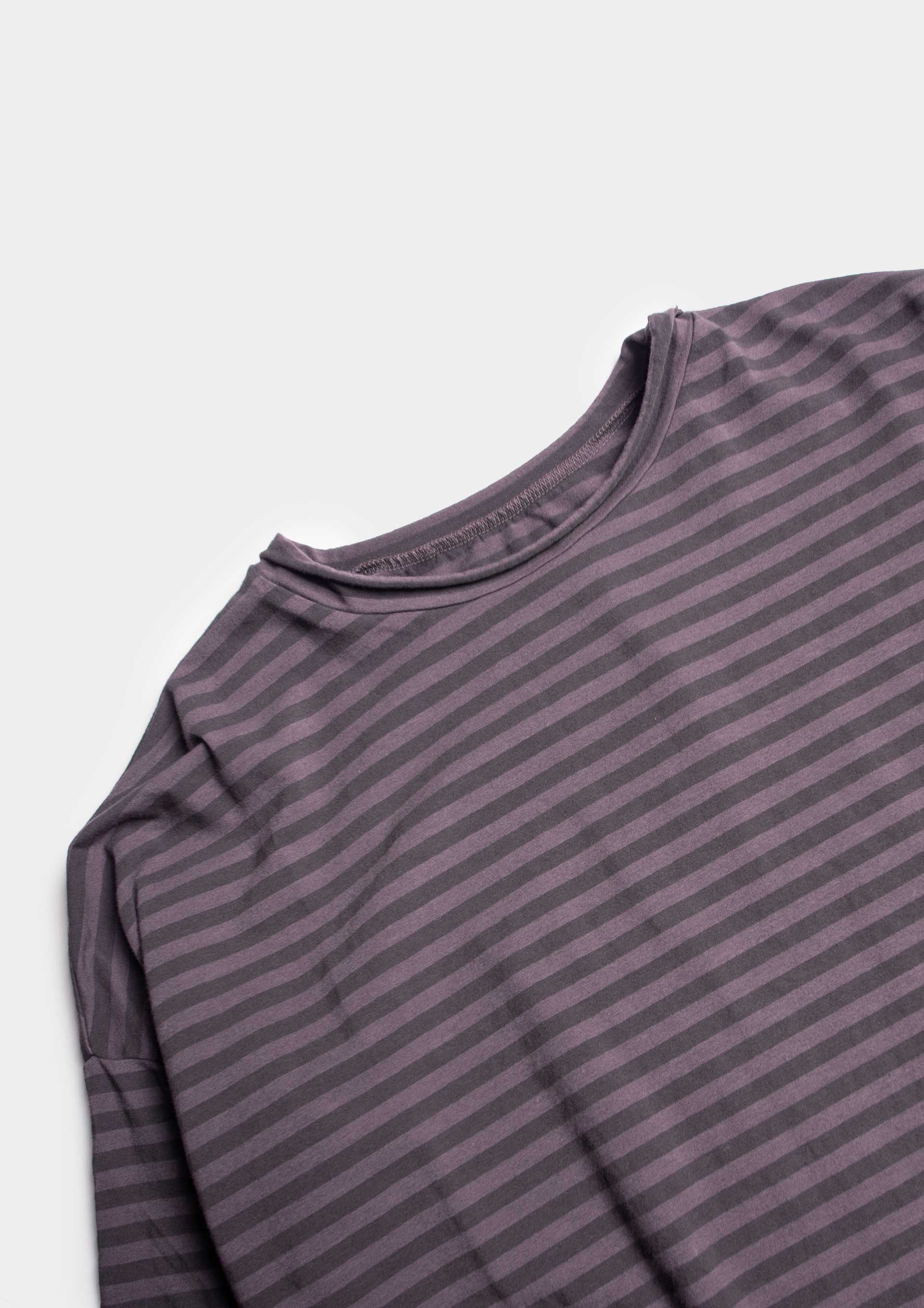 T-shirt a righe dal taglio over a scatola, girocollo con finiture a taglio vivo.