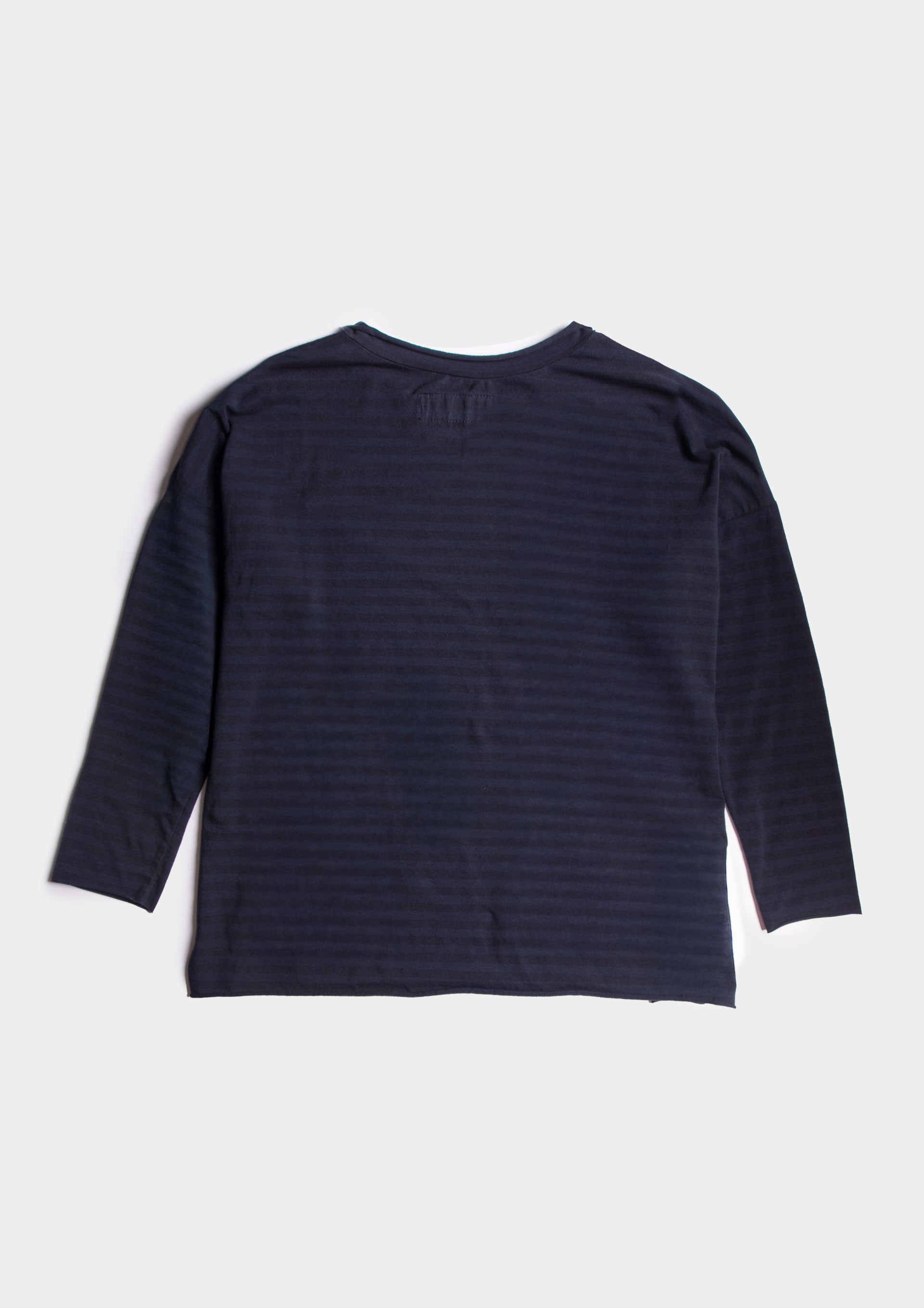 T-shirt a righe dal taglio over a scatola, girocollo con finiture a taglio vivo.