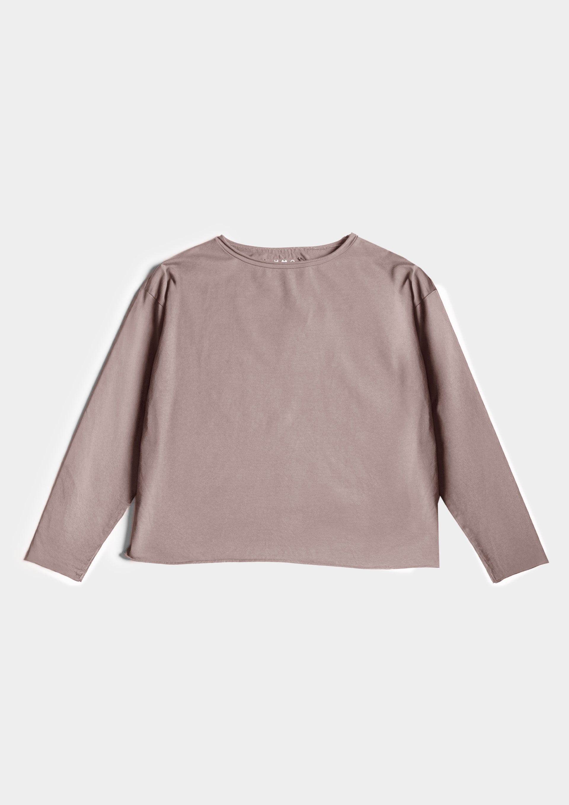 T-shirt dal taglio a scatola, girocollo con finiture a taglio vivo.