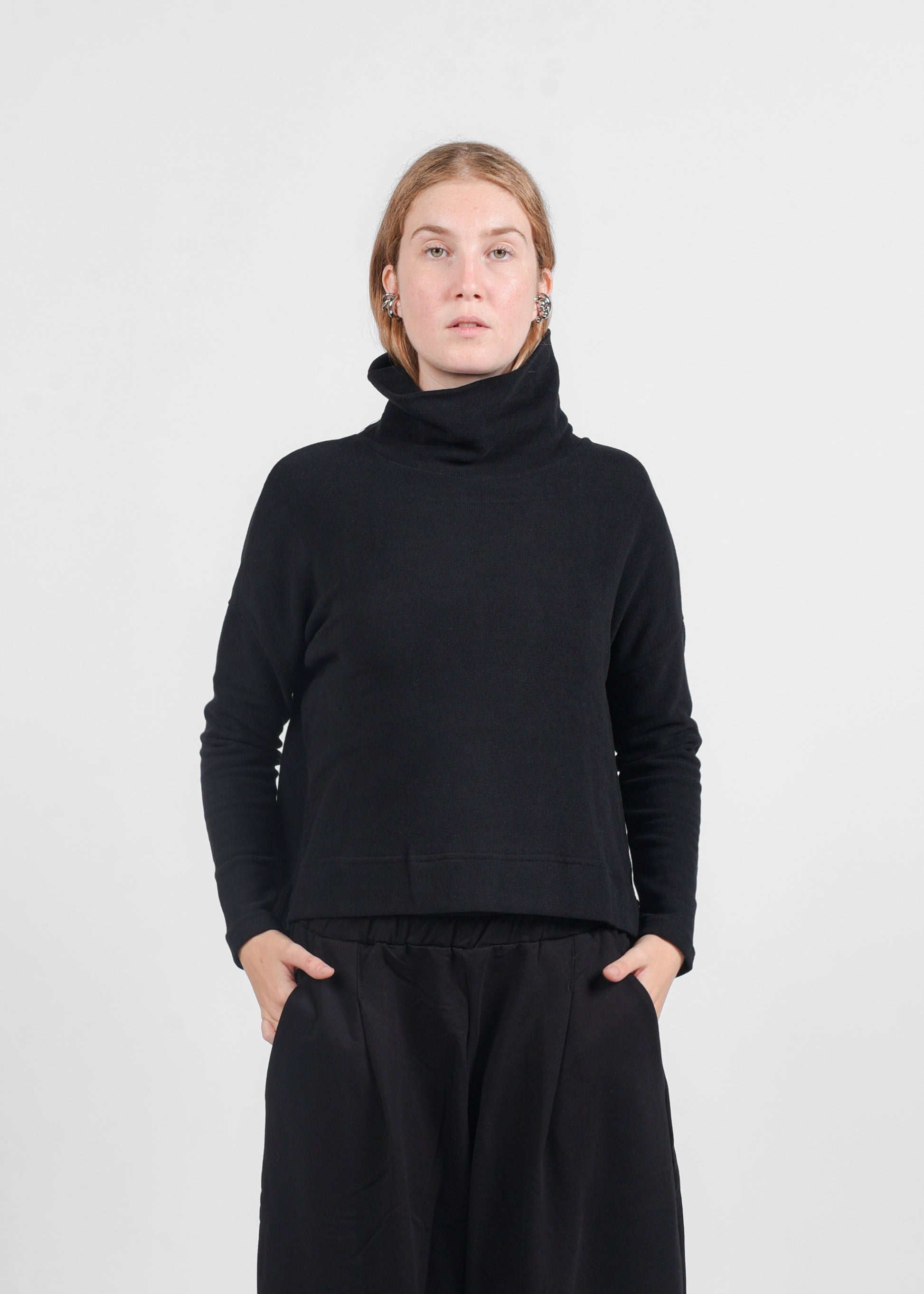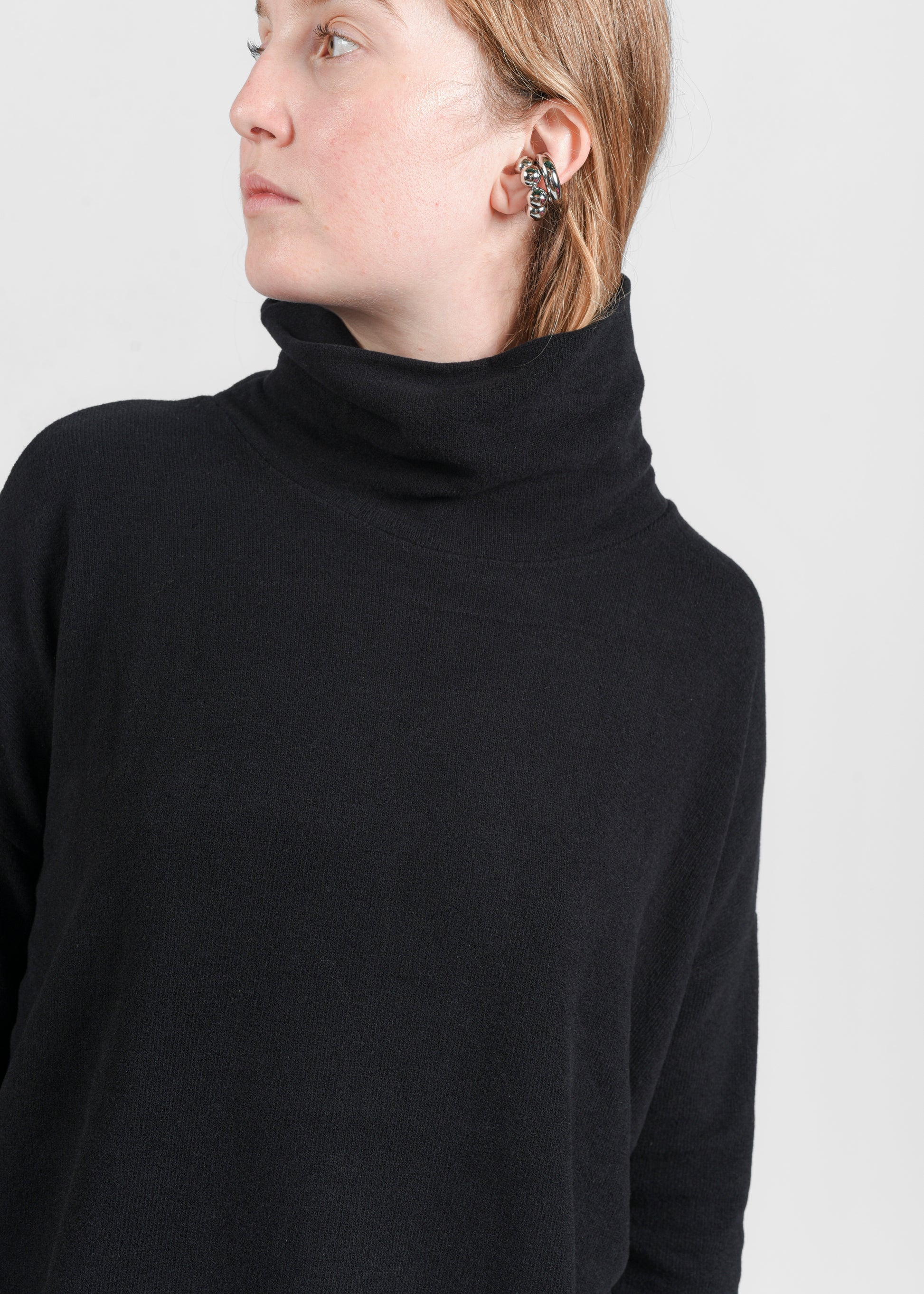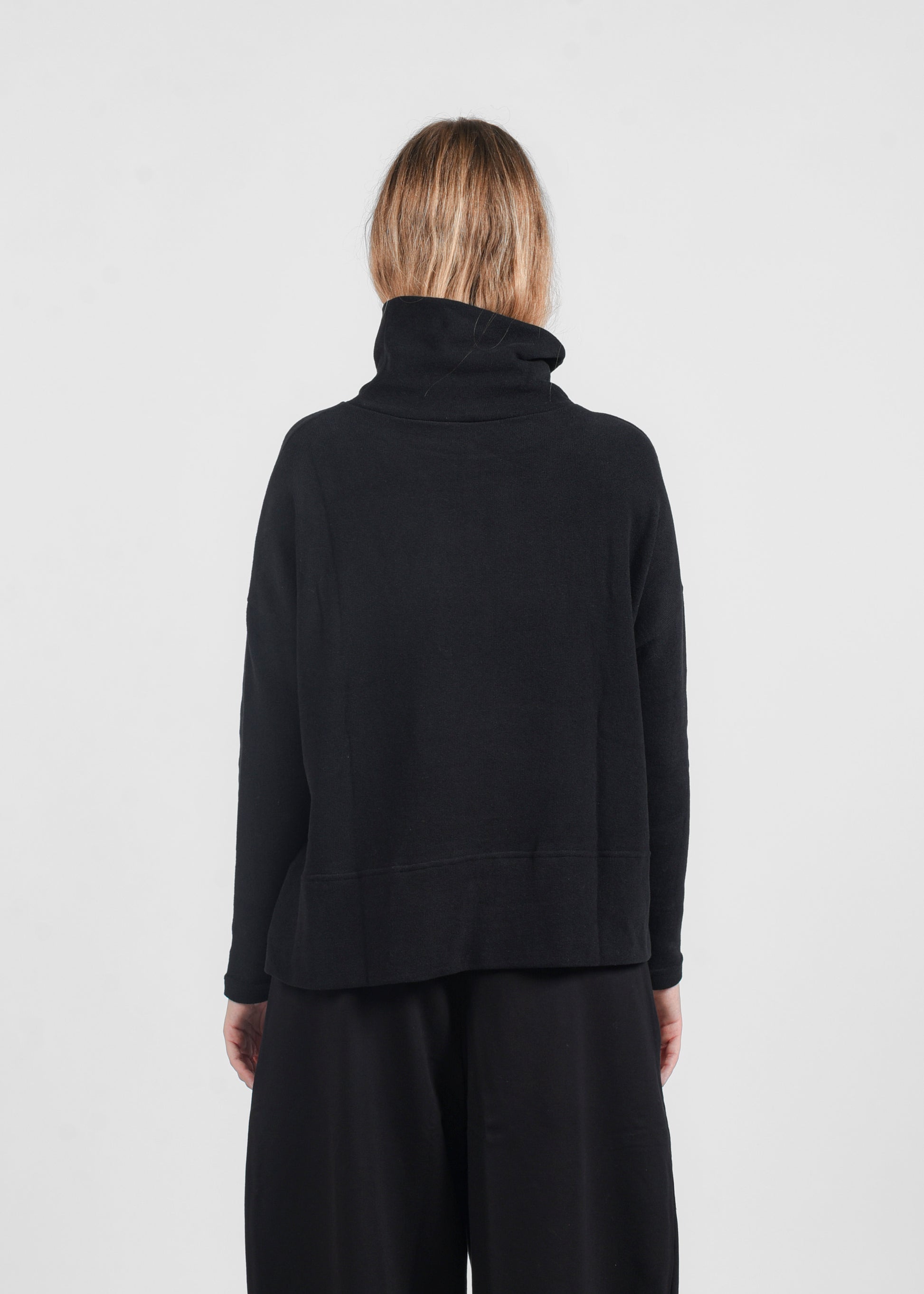 Maglia a collo alto morbido dal taglio boxy, modello scatoletta, per un fit comodo e moderno. Realizzata in 48% cotone, 48% poliestere e 4% elastan, garantisce morbidezza, comfort e leggerezza.