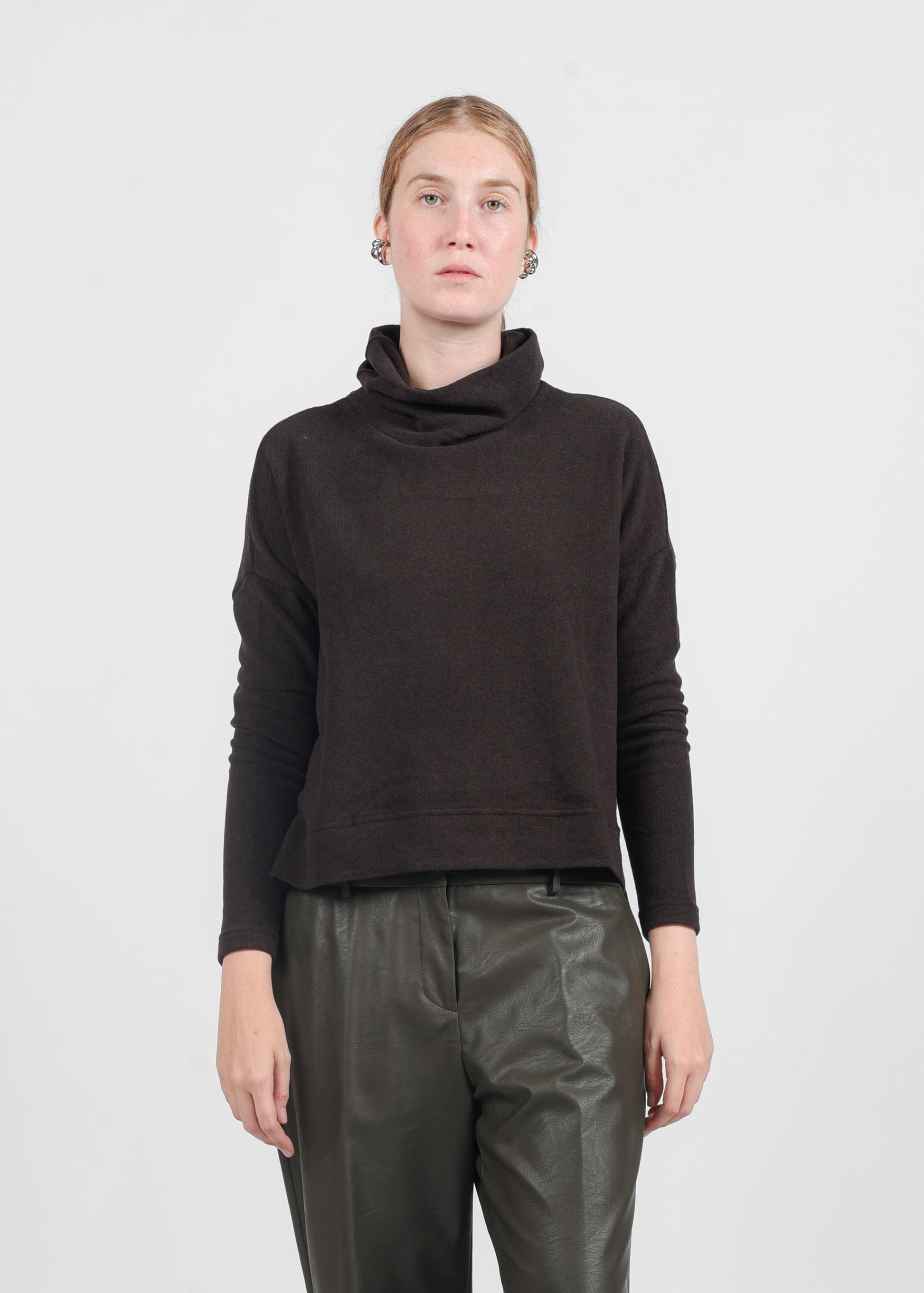 Maglia a collo alto morbido dal taglio boxy, modello scatoletta, per un fit comodo e moderno. Realizzata in 48% cotone, 48% poliestere e 4% elastan, garantisce morbidezza, comfort e leggerezza.