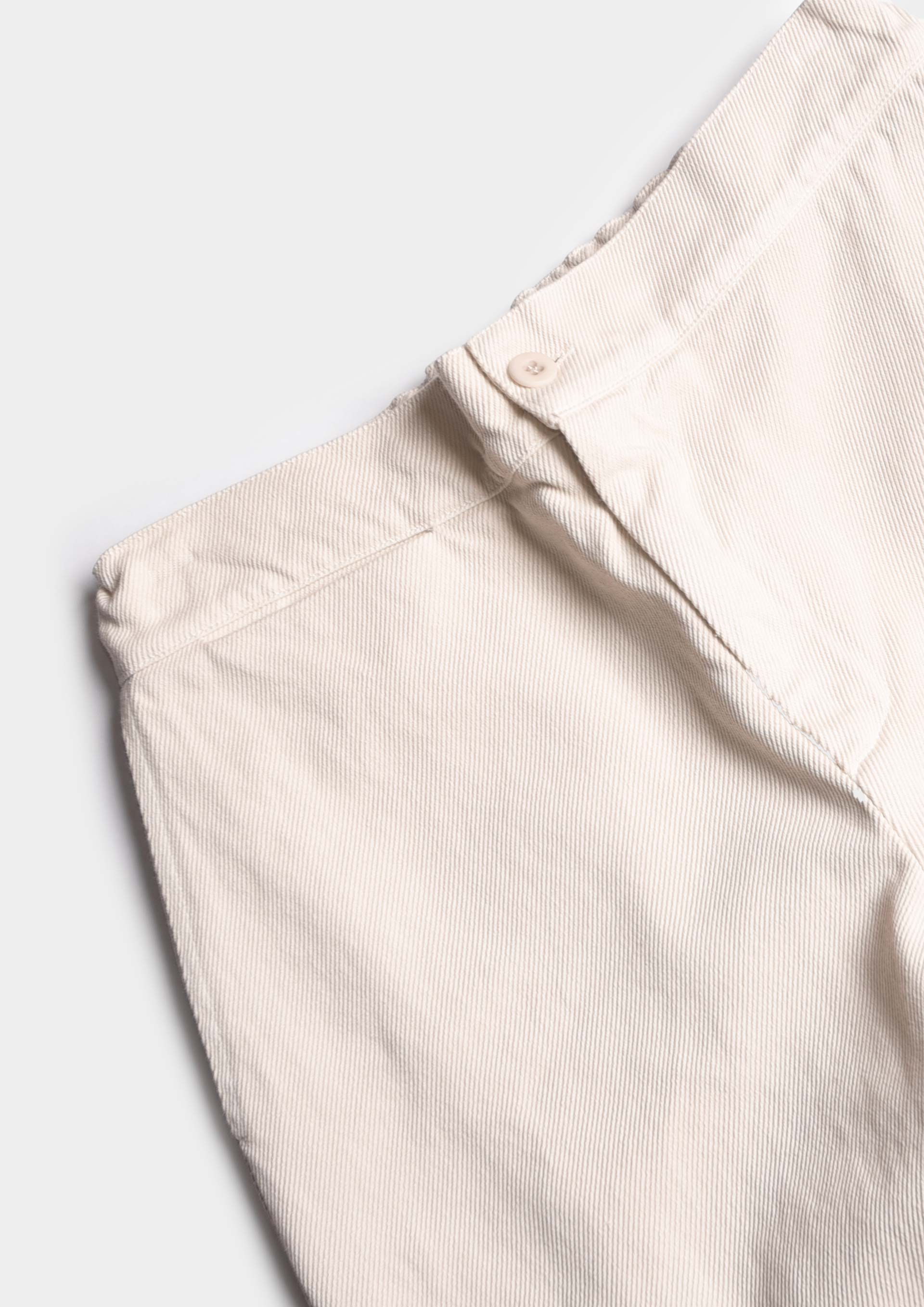 Pantalone con elastico in vita sul retro, tasche frontali e taschino, gamba dritta. Composizione: 100% cotone.
