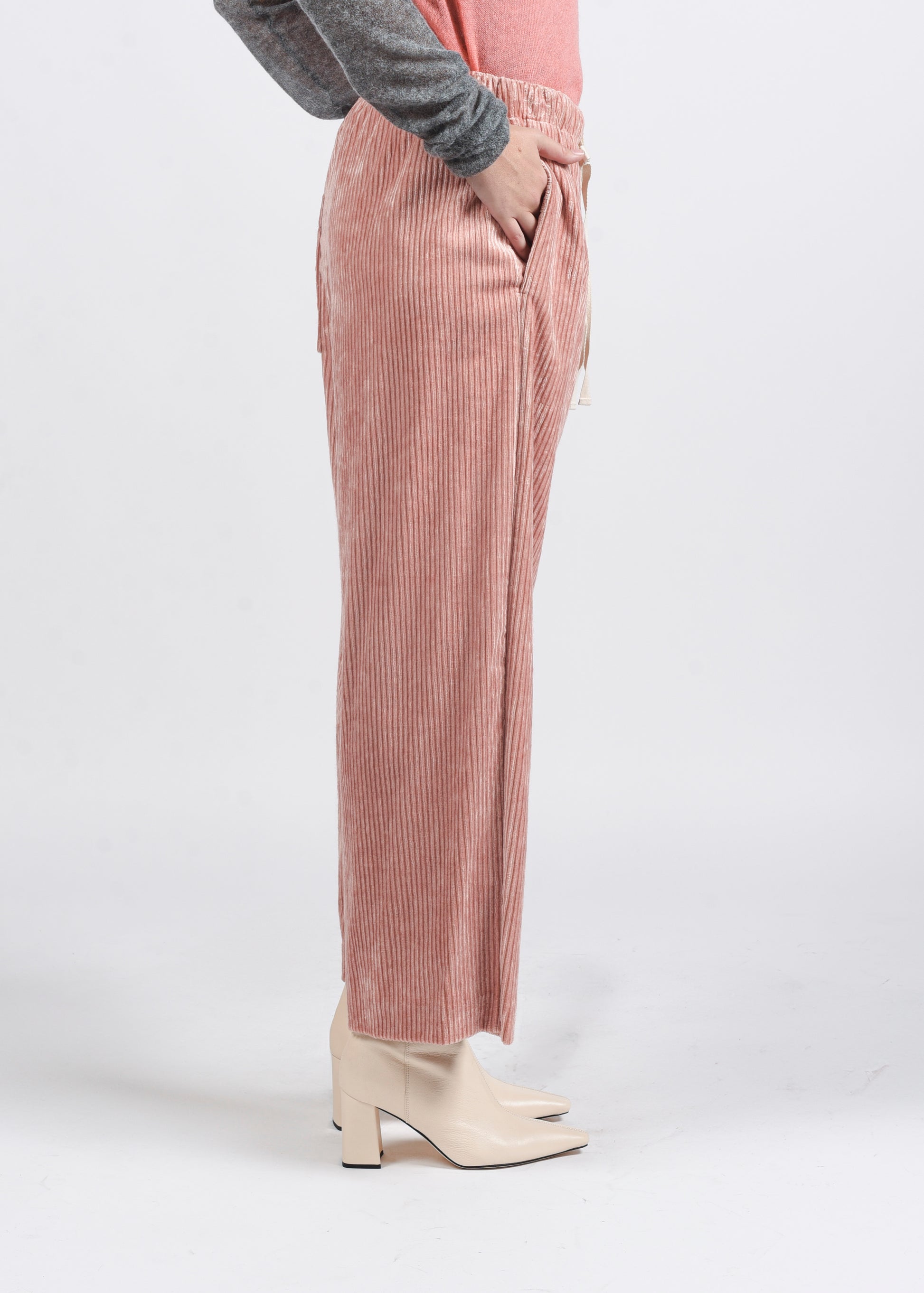 Pantaloni dritti in velluto a coste con tasche e coulisse in vita.