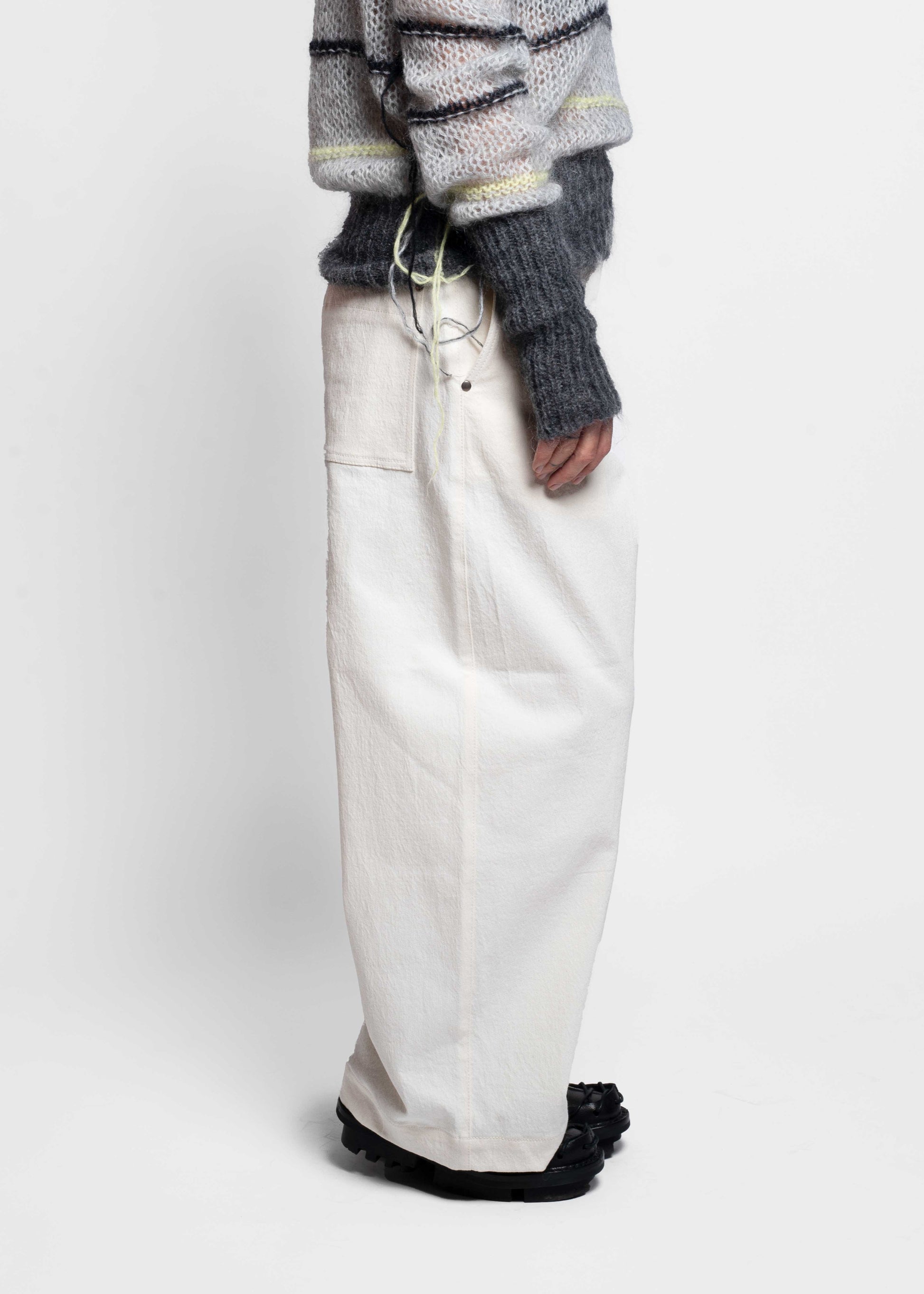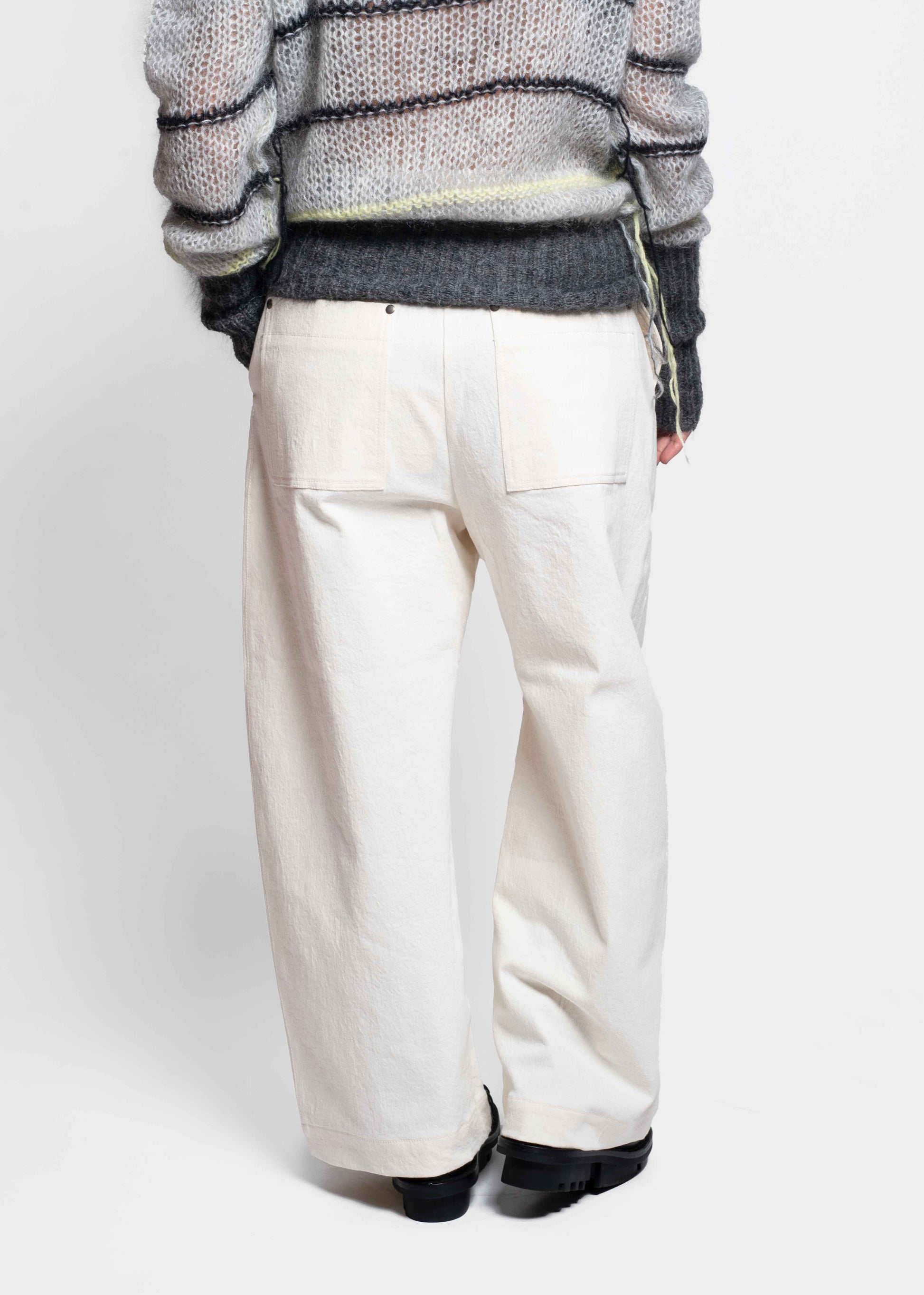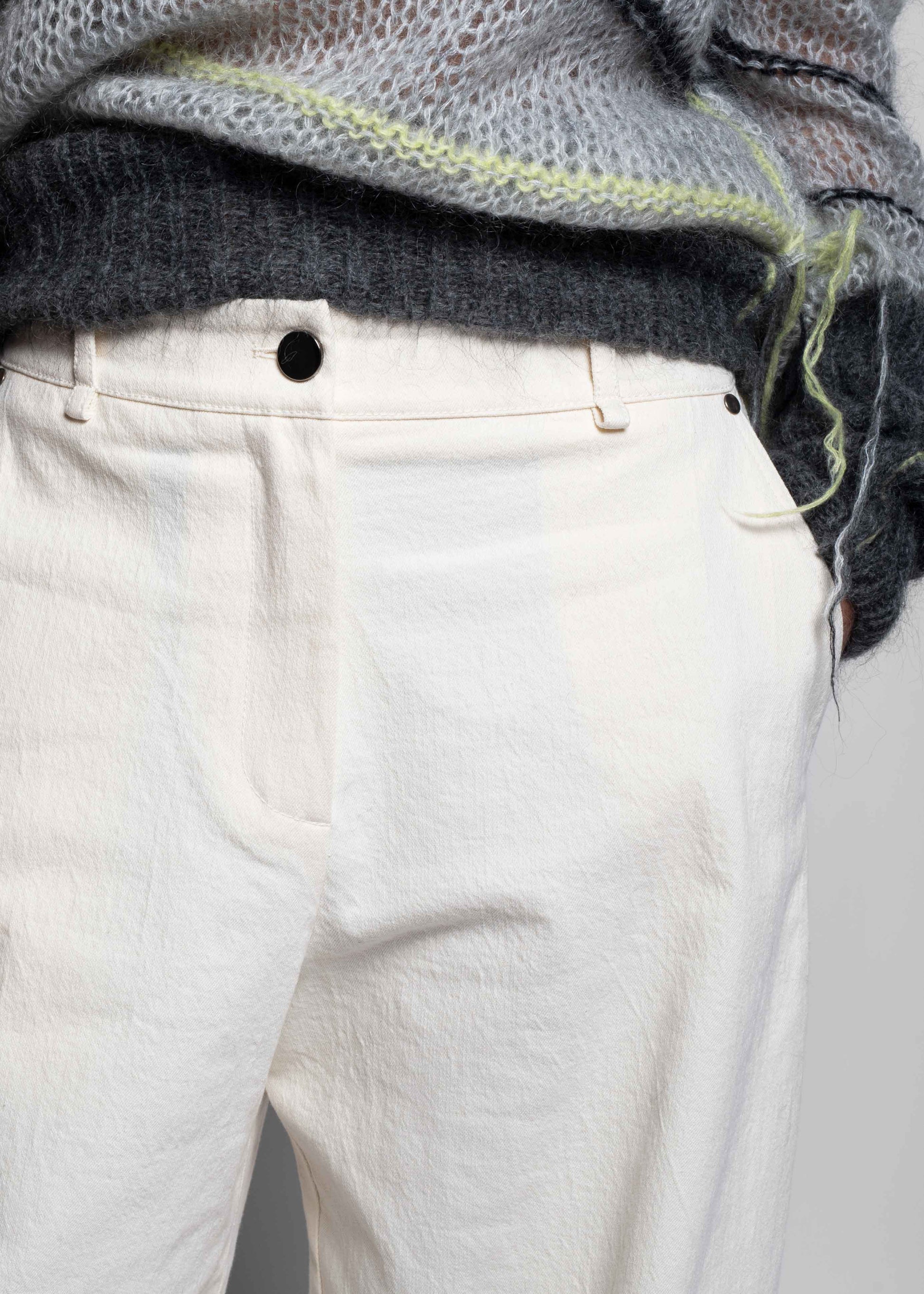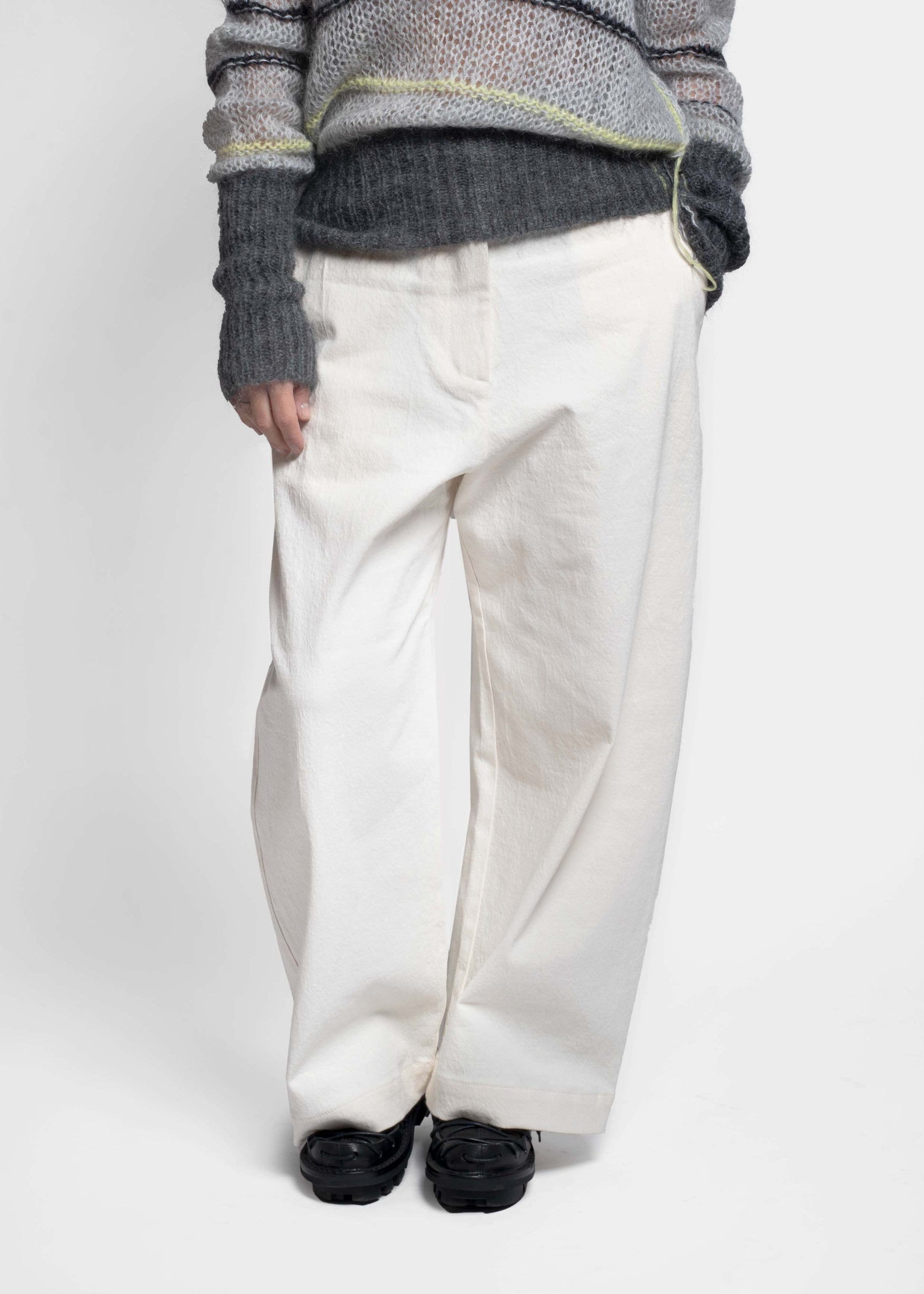 Pantaloni modello over con gamba ampia e tasche sul retro, realizzati in un tessuto leggero con effetto trama che conferisce movimento e personalità al capo. Perfetti per un look rilassato ma sofisticato, ideali sia per il giorno che per la sera.