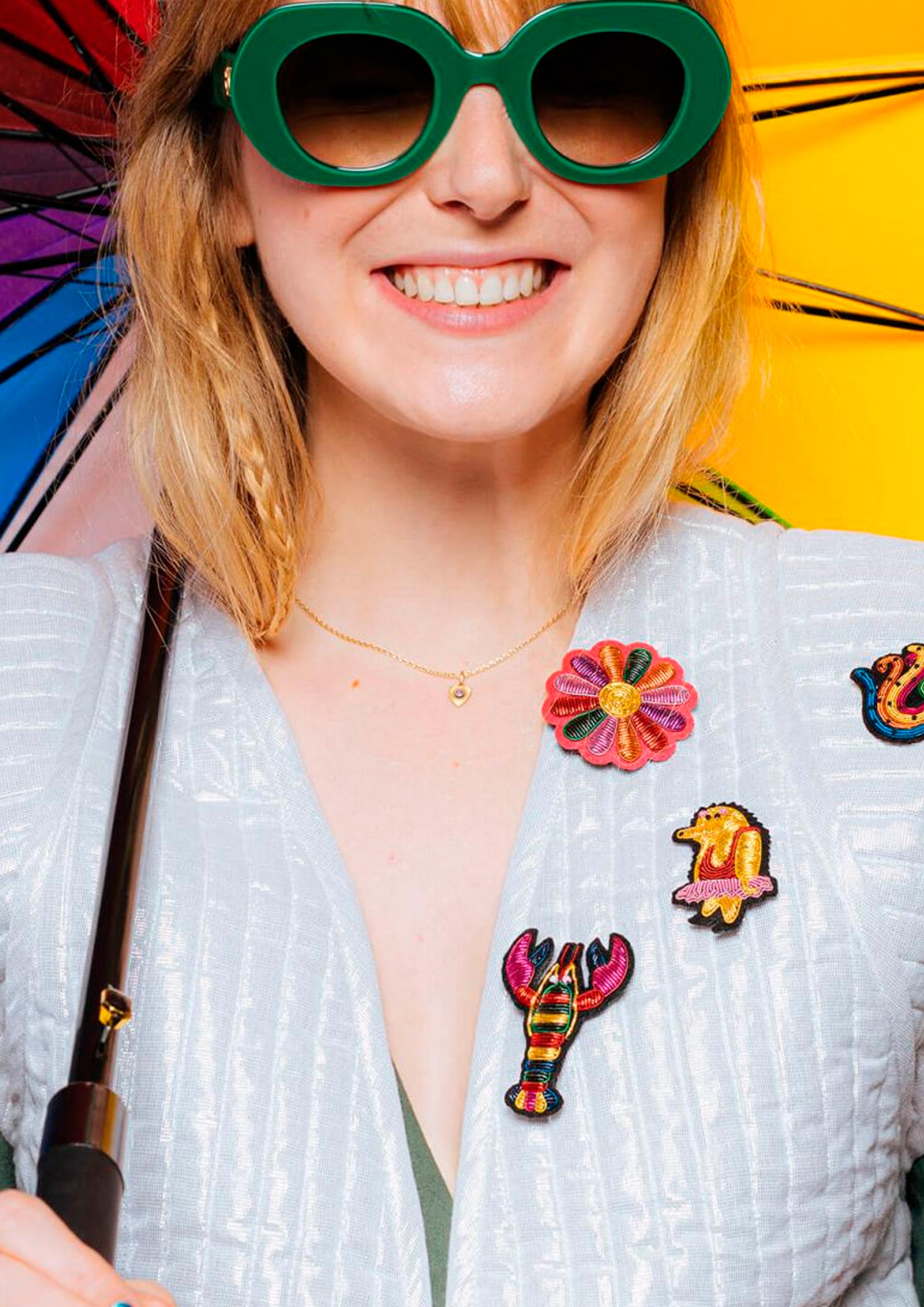 Le spille di Macon et Lesquoy sono disegnate e ricamate a mano, con un particolare filo metallico secondo una antichissima tecnica indo-pachistana. Sono un accessorio elegante e divertente, perfetto per un regalo!