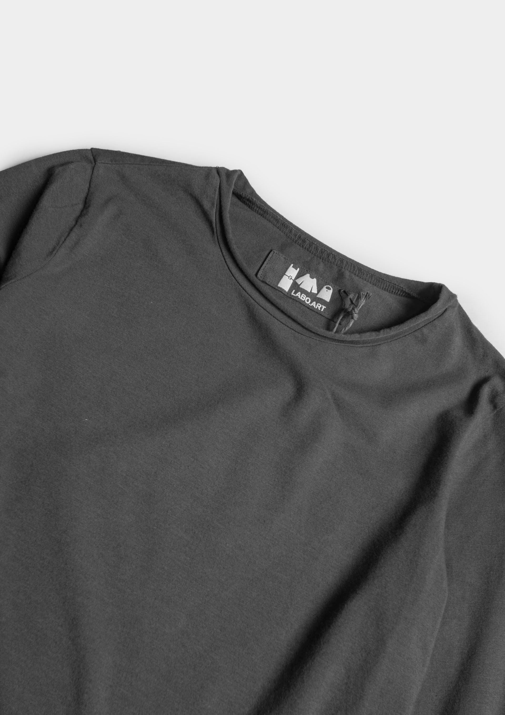 T-shirt basica a girocollo con finiture a taglio vivo.